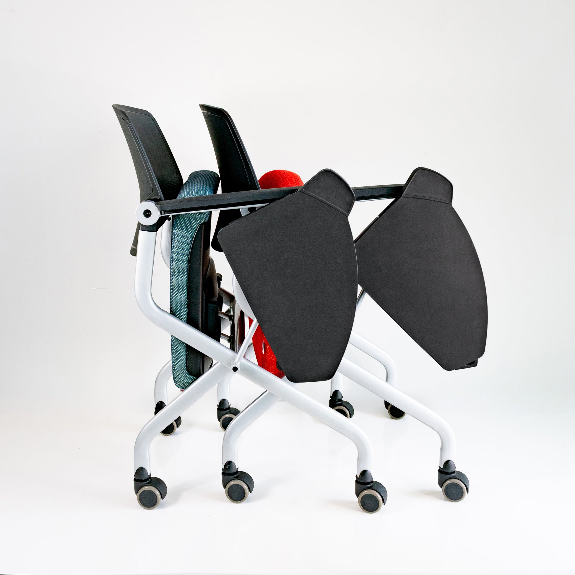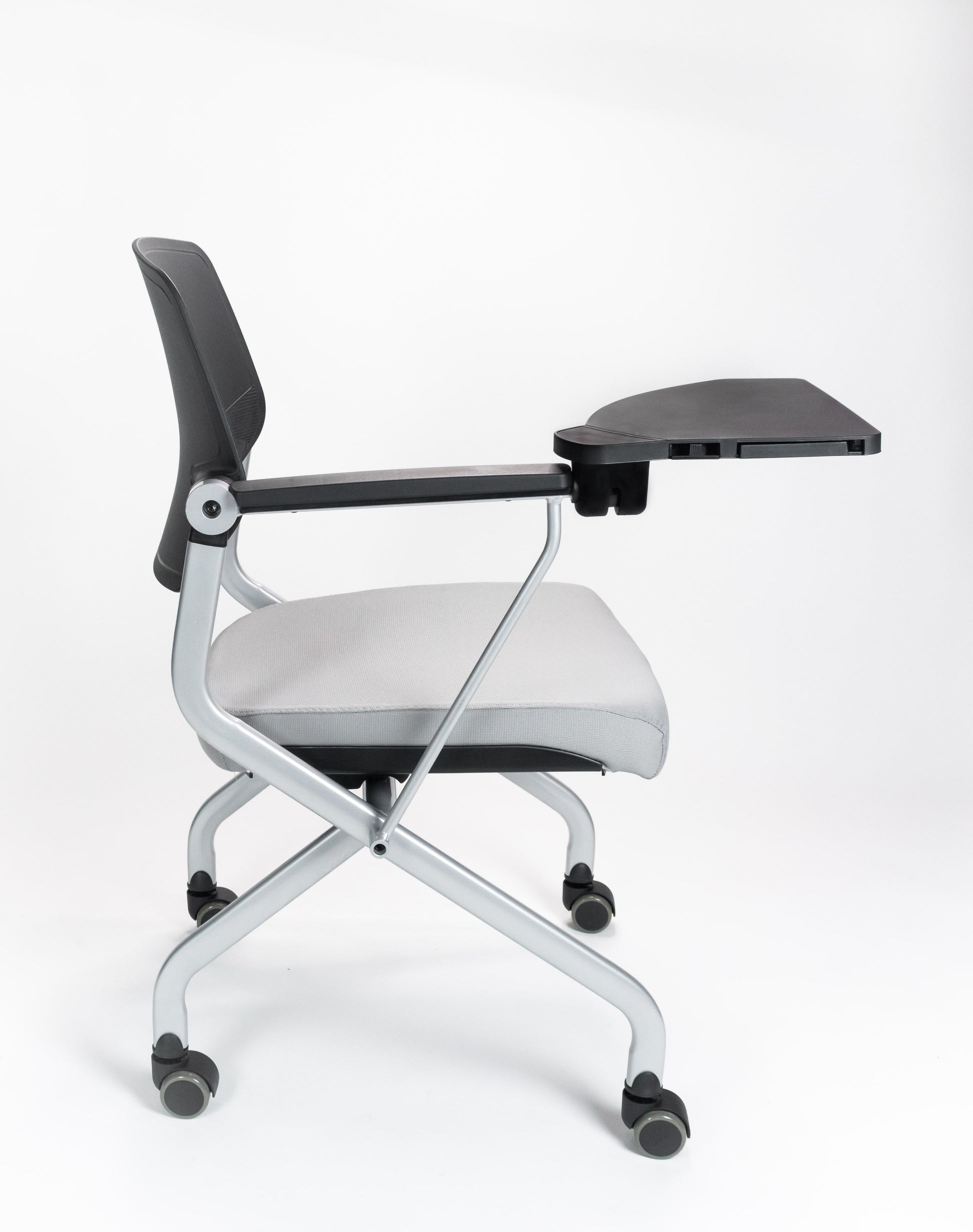 Silla de capacitación con estructura de acero tubular y acabado en pintura electrostática color gris.