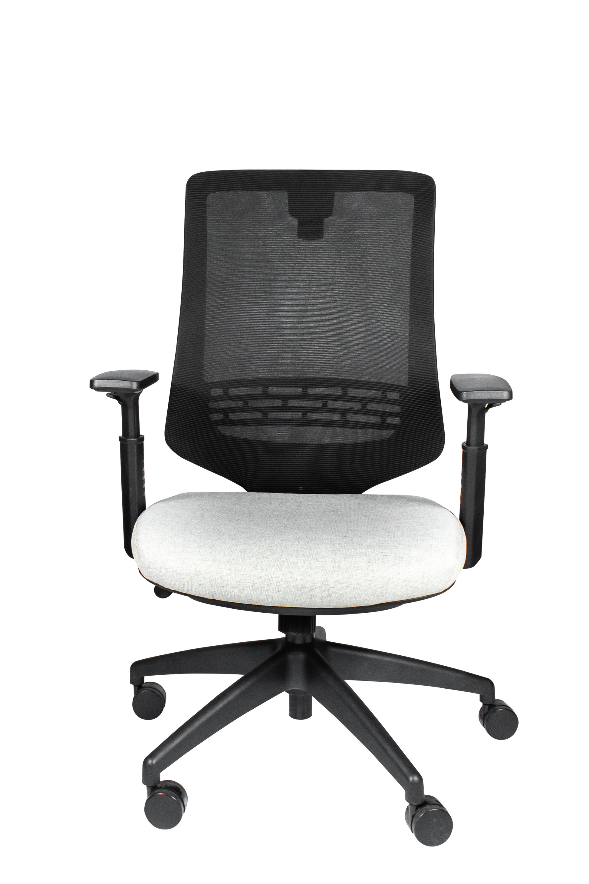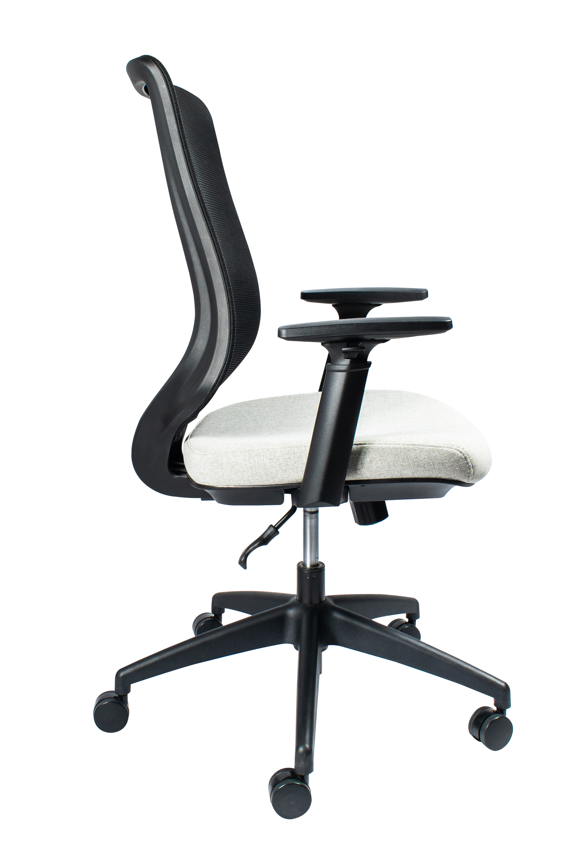 Reclinamiento sincrónico con una posición de bloqueo. Un solo maneral de altura y reclinamiento. Perilla de tensión.